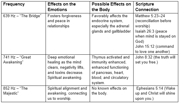 Healing Frequencies Chart: 639 Hz, 741 Hz, and 852 Hz with Scripture Connections